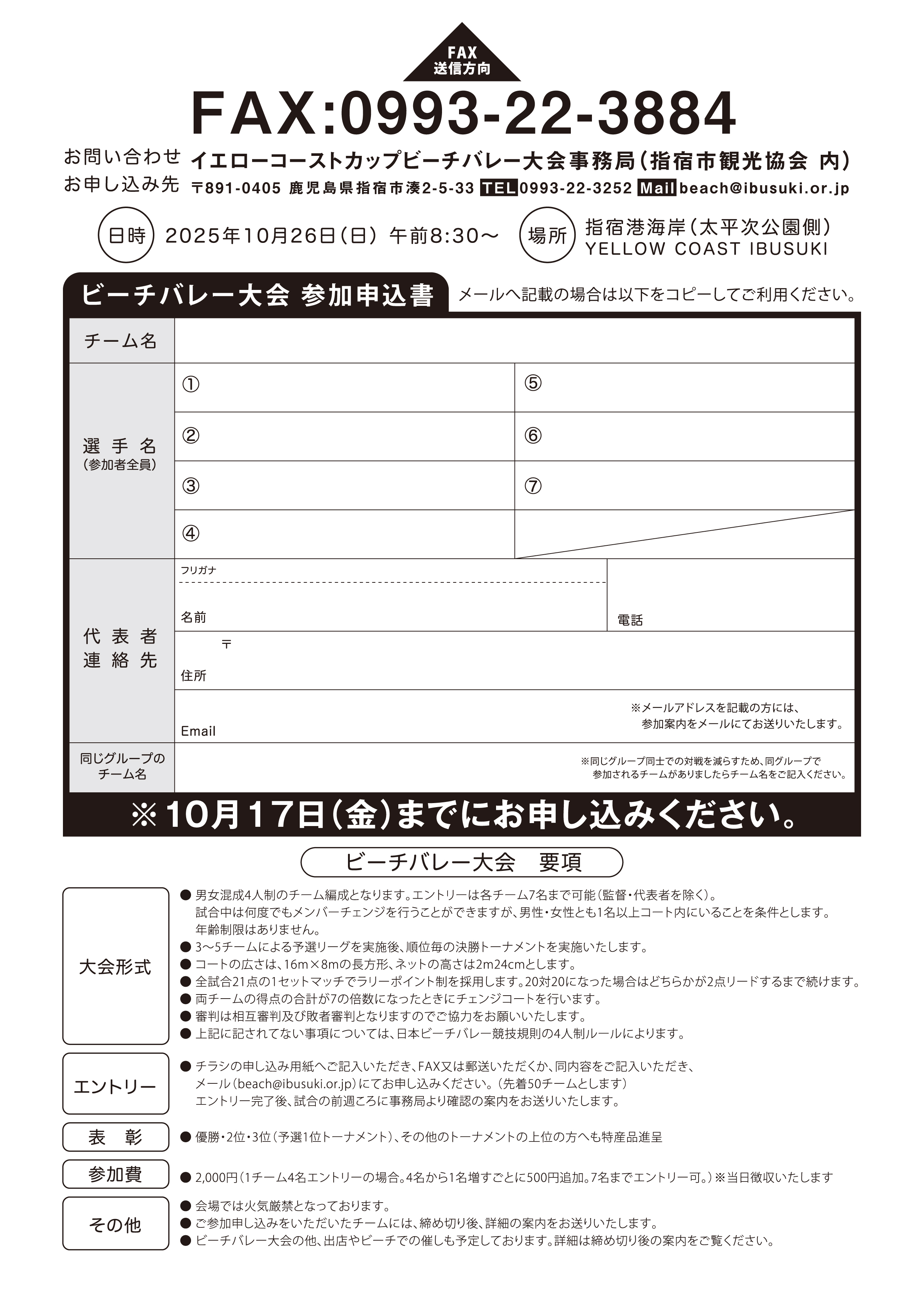 YELLOW COAST CUPビーチバレー大会 事務局(指宿市観光協会 内)